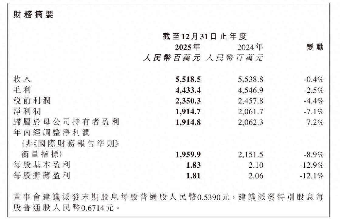 3月19日晚间,巨子生物(02367)发布的公告显示,该公司2025年实现收入约55.19亿元,同比减少0.4%;净利润约19.15亿元,同比下滑7.1%。